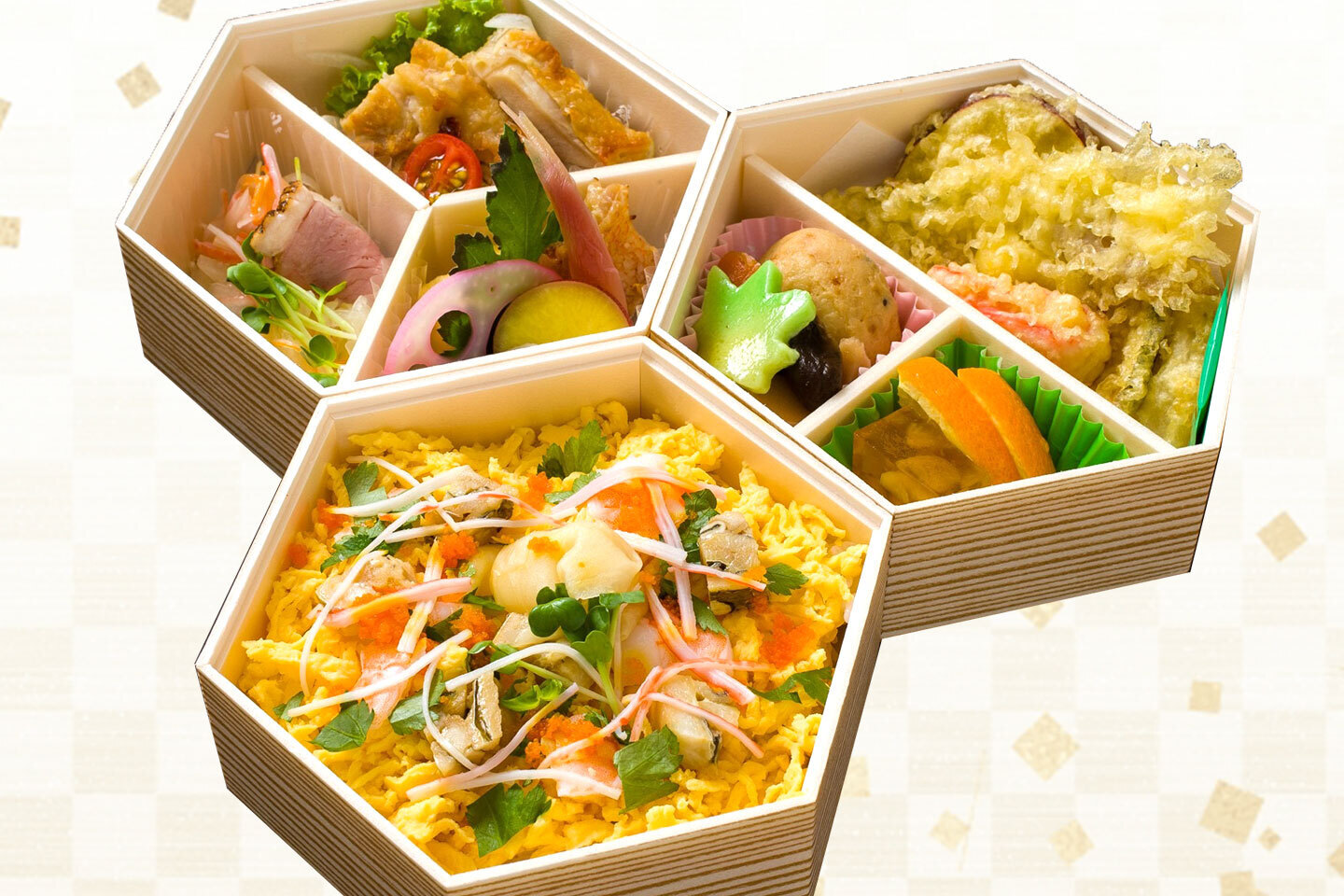 お持ち帰り容器サイズ縦7.5cm × 6辺 (三段)